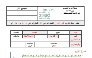 اختبار علوم غير محلول خامس ابتدائي الفصل الأول