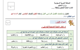 اختبار منتصف الفصل الأول علوم خامس ابتدائي أ. نوار العتيبي1445