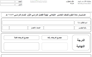 اختبار نهائي علوم خامس ابتدائي الفصل الأول