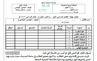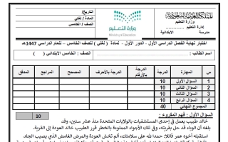 بنك أسئلة خامس ابتدائي لجميع المواد فصل أول
