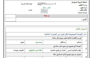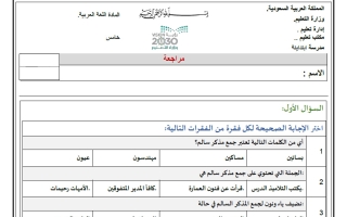 حل مراجعة لغتي الصف الخامس الابتدائي الفصل الأول
