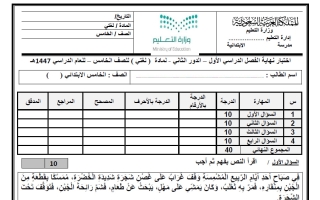 اختبار نهائي لغتي الجميلة خامس ابتدائي الفصل أول 1445