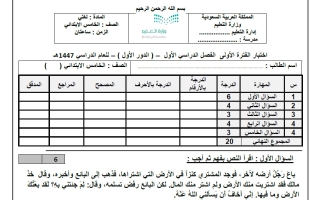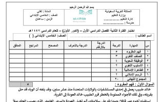 اختبار لغتي الصف الخامس الابتدائي الفصل الأول