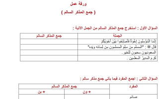 ورقة عمل جمع المذكر السالم لغتي الصف الخامس الابتدائي الفصل الأول