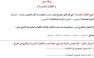 ورقة عمل الأفعال الخمسة لغتي الصف الخامس الابتدائي الفصل الأول