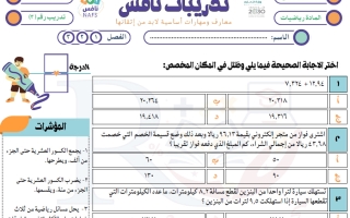تدرب على الاختبار الفصل الثالث العمليات على الكسور العشرية رياضيات سادس ابتدائي ف1