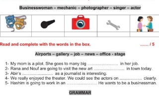 أوراق عمل لغة انجليزية سادس ابتدائي الفصل الأول