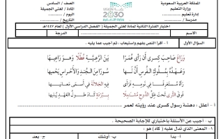 نموذج 2 اختبار قراءة لغتي الصف السادس الابتدائي الفصل الأول