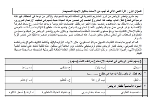 نموذج 1 اختبار قراءة لغتي الصف السادس الابتدائي الفصل الأول