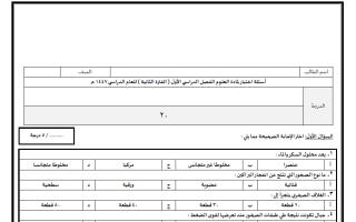 اختبار علوم غير محلول أول متوسط الفصل الأول