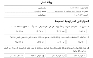 أوراق عمل رياضيات الصف الأول المتوسط الفصل الأول