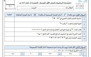 اختبار رياضيات للصف الأول المتوسط الفصل الأول