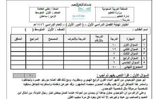 اختبار نهائي لغتي للصف الأول المتوسط الفصل الأول