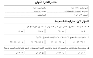 اختبار رياضيات الصف الثاني المتوسط الفصل الأول