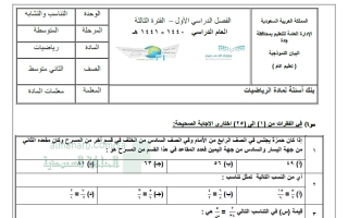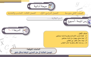 اختبار تجريبي فصل (التناسب والتشابه) رياضيات الصف الثاني المتوسط الفصل الأول