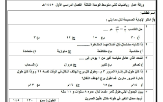 ورق عمل الوحدة الثالثة رياضيات الصف الثاني المتوسط الفصل الأول