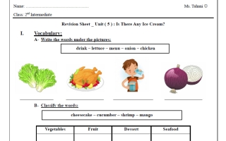 أوراق مراجعة الوحدة الخامسة لغة انجليزية الصف الثاني المتوسط الفصل الأول