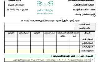اختبار رياضيات الصف الثالث المتوسط الفصل الأول