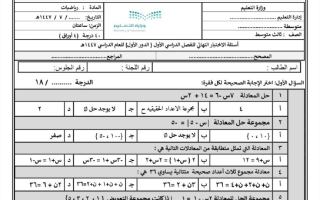 اختبار نهائي رياضيات للصف الثالث المتوسط الفصل الأول