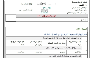 أسئلة اختبار لغتي الصف الثالث المتوسط الفصل الأول أ عبد الله القرني