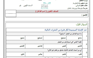 اختبار اسم الفاعل لغتي الصف الثالث المتوسط الفصل الأول أ سعاد اللهيبي