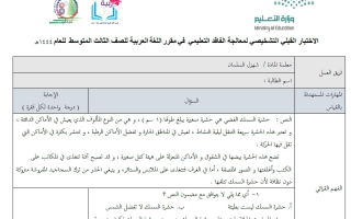 الاختبار القبلي التشخيصي لغتي الصف الثالث المتوسط الفصل الأول أ شهزل السلمان