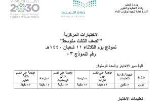 نماذج اختبار لغتي الصف الثالث المتوسط الفصل الأول
