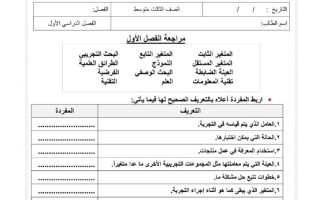 مراجعة الفصل الأول علوم الصف الثالث المتوسط الفصل الأول