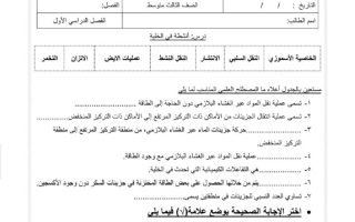 ورقة عمل غير محلولة درس انشطة الخلية علوم الثالث المتوسط الفصل الأول