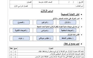 ورقة عمل غير محلولة درس الزلزال علوم الثالث المتوسط الفصل الأول