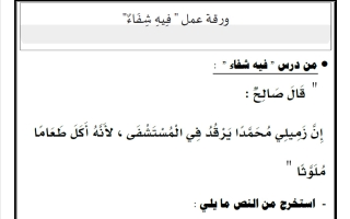 ورقة عمل درس فيه شفاء لغتي الصف الأول الابتدائي الفصل الثاني
