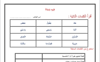 أوراق عمل فيه شفاء لغتي للصف الأول الابتدائي الفصل الثاني