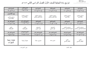 توزيع منهج المهارات الحياتية الصف الأول الابتدائي الفصل الثاني