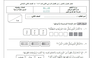 اختبار فصل الكسور رياضيات الصف الثاني الابتدائي الفصل الثاني