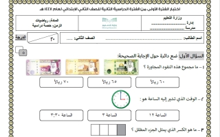 اختبار رياضيات الصف الثاني الابتدائي الفصل الثاني