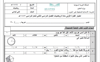 اختبار رياضيات فصل الجمع ثاني ابتدائي الفصل الثاني