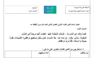 اختبار تشخيصي لغتي ثاني ابتدائي الفصل الثاني