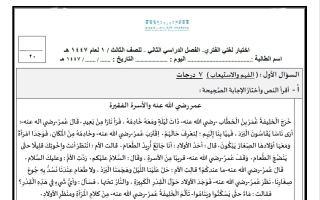 نموذج اختبار لغتي للصف الثالث الابتدائي الفصل الثاني