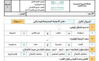 اختبار نهائي رياضيات رابع ابتدائي الفصل الثاني 1445