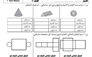مراجعة الأشكال الهندسية والاستدلال المكاني رياضيات الصف الرابع الابتدائي الفصل الثاني