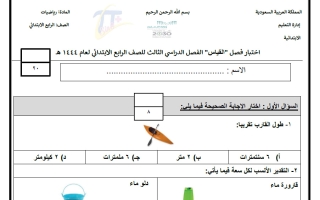 اختبار فصل القياس رياضيات الصف الرابع الابتدائي الفصل الثاني