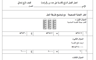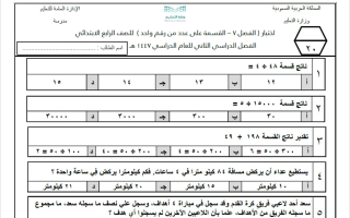 نموذج اختبار فصل القسمة على عدد من رقم واحد رياضيات الصف الرابع الابتدائي الفصل الثاني