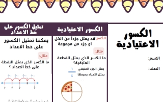 مطوية الكسور الاعتيادية رياضيات الصف الرابع الابتدائي الفصل الثاني