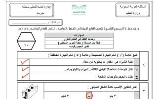 حل ورقة عمل الاسبوع التاسع رياضيات الصف الرابع الابتدائي الفصل الثاني