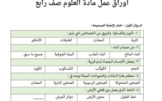 أوراق عمل علوم الصف الرابع الابتدائي الفصل الثاني