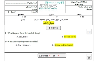 حل اختبار لغة انجليزية الصف الخامس الابتدائي الفصل الثاني