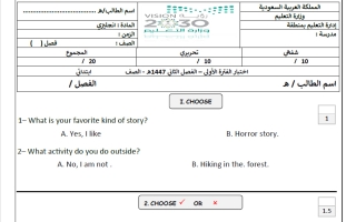 اختبار لغة انجليزية الصف الخامس الابتدائي الفصل الثاني