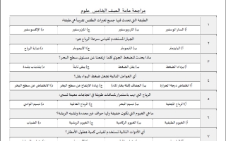 مراجعة عامة علوم الصف الخامس الابتدائي الفصل الثاني