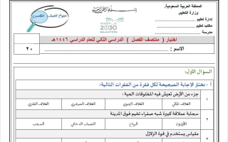اختبار منتصف علوم خامس ابتدائي الفصل الثاني 1446 أ. سكرة الشمري