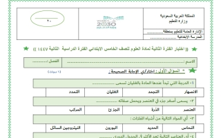 اختبار نهاية الفصل الثاني علوم خامس ابتدائي أ. نوار العتيبي 1445